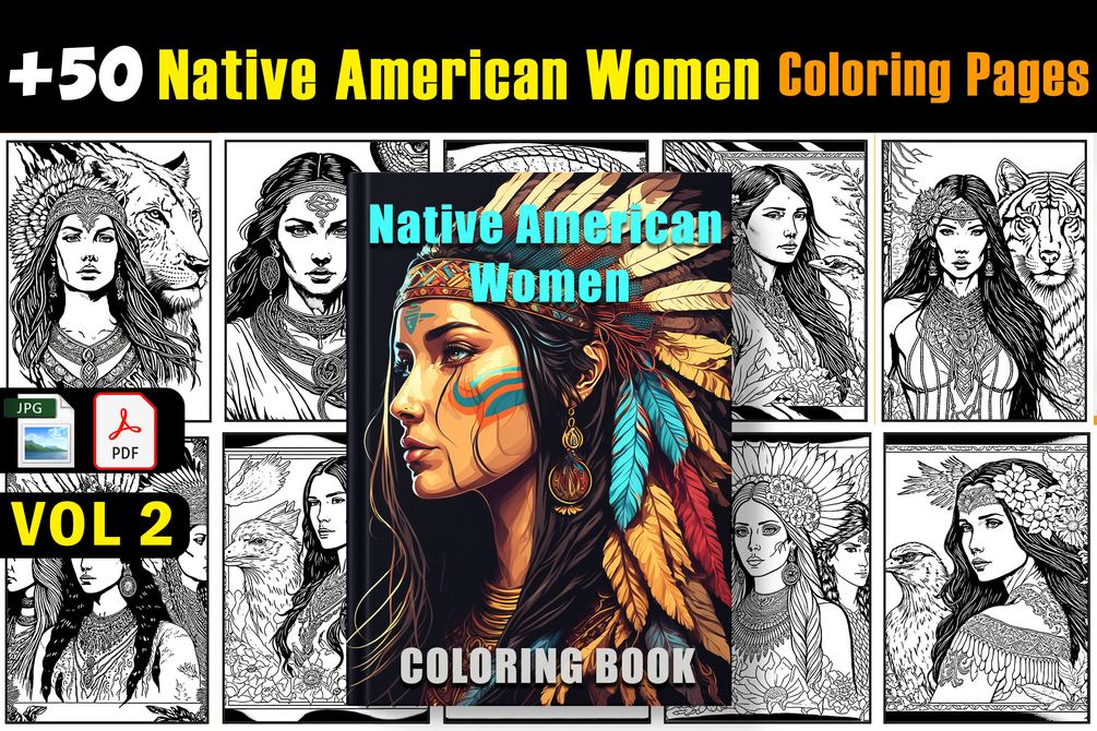 Native American Women Coloring Pages : This template is ideal for your low-content or no-content book business, you can use it for KDP or any print-on-demand platform. Simply add your own cover and upload it to get started!